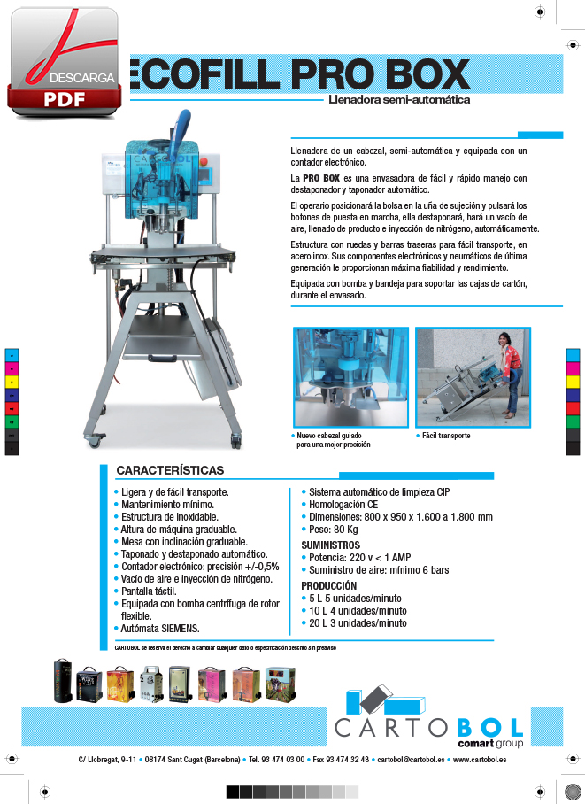 La PRO BOX es una envasadora de fácil y rápido manejo con destaponador y taponador automático.
