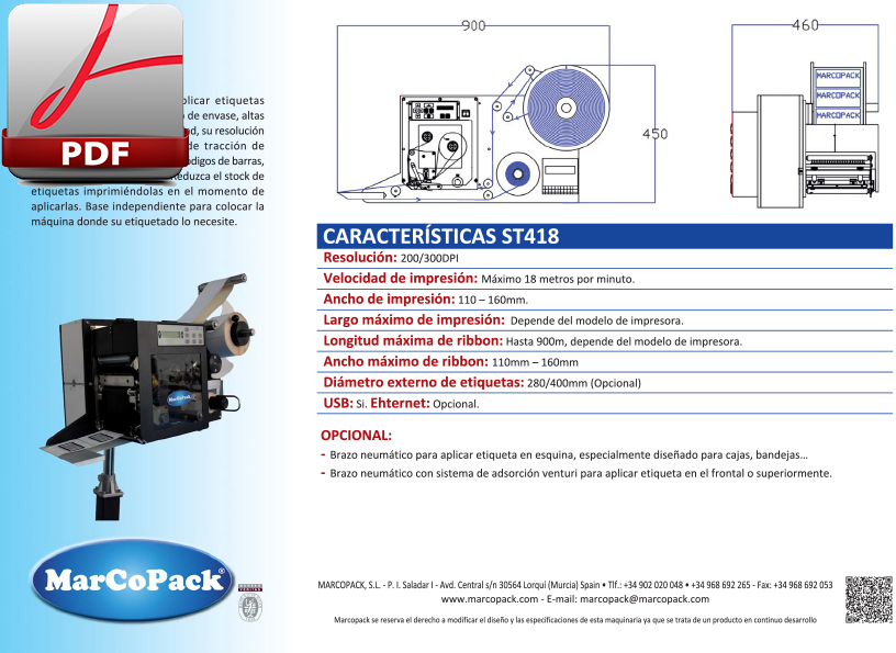Diseñada para imprimir y aplicar etiquetas autoadhesivas en cualquier tipo de envase, altas prestaciones debido a su velocidad, su resolución y un sistema independiente de tracción de etiqueta. Usted puede imprimir códigos de barras, logos, fechas de caducidad…