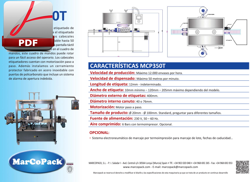 La MCP-350T es un sistema de etiquetado de gran precisión y preparado para el etiquetado de alta velocidad. Monta dos cabezales etiquetadores con velocidad variable hasta 50 metros por minuto.