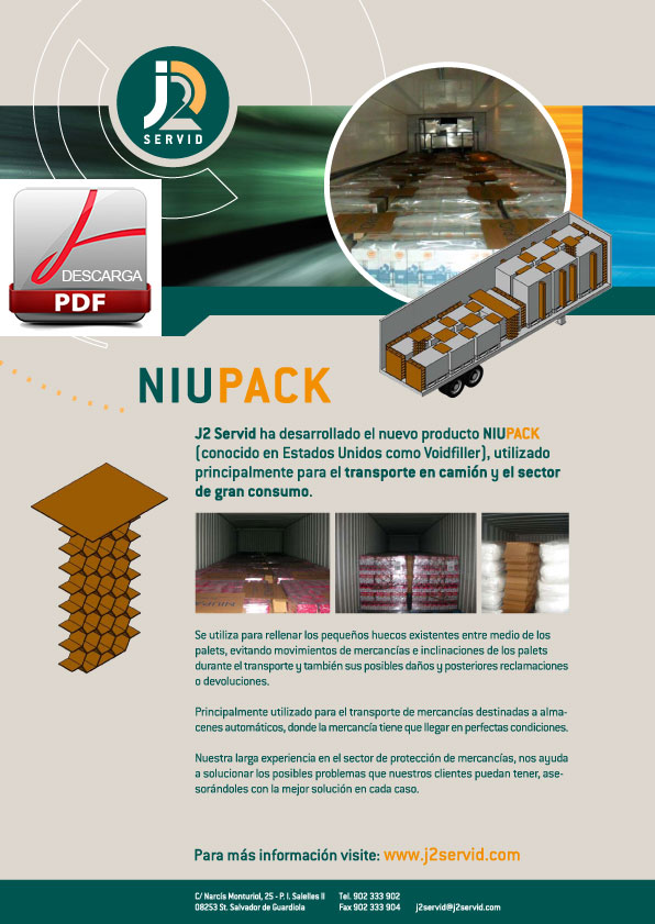 J2 Servid ha desarrollado el nuevo producto NIUPACK (conocido en Estados Unidos como Voidfiller), utilizado principalmente para el transporte en camión y el sector del gran consumo.