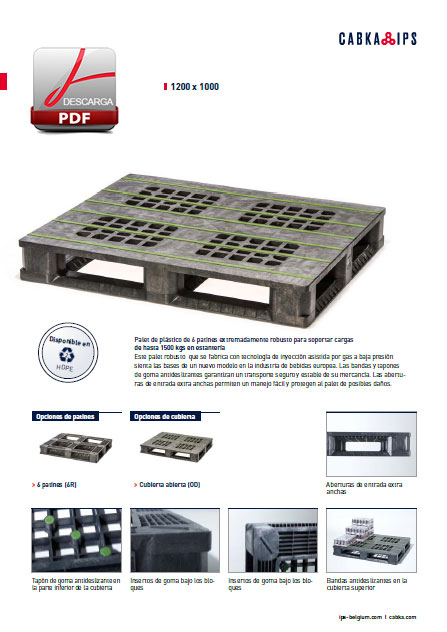 Palet de plástico de 6 patines extremadamente robusto para soportar cargas de hasta 1500 kgs en estantería