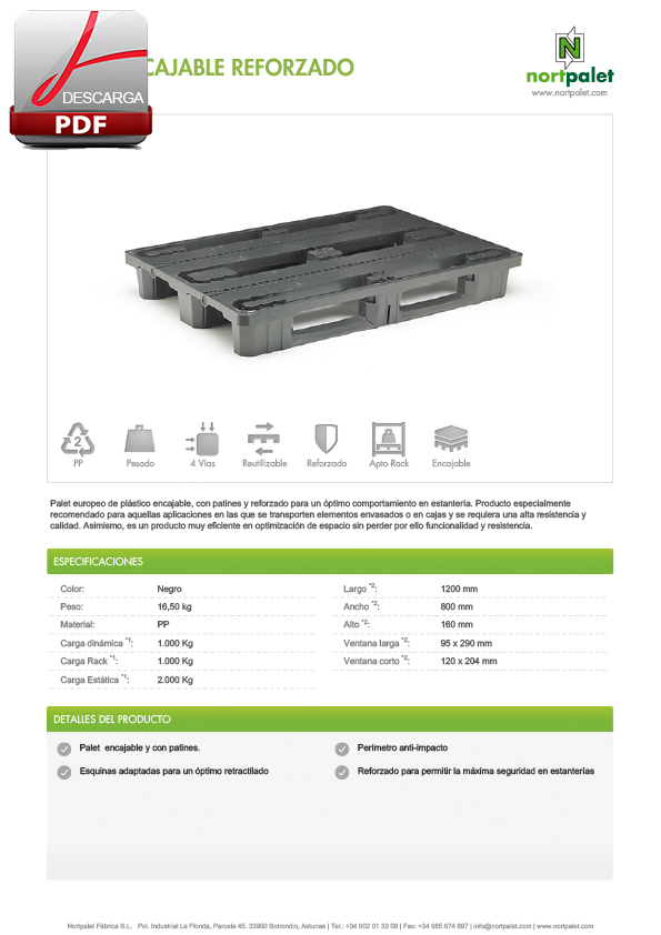 1200X800 Palet encajable reforzado