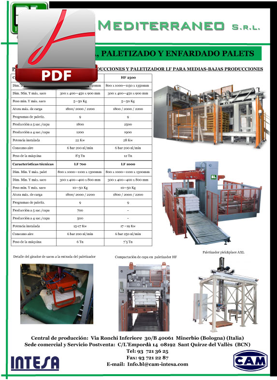 – Paletizador HF para altas producciones.