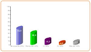 Otra de las conclusiones que se desprende de este estudio es que la internacionalización no es una actuación estratégica para este sector. Más de cuatro de cada diez empresas del sector (42,3%) y para tres de cada diez (30,9%) supone menos de un 10% de su facturación. Sólo un 12,2% el conjunto de empresas factura más del 30% en el exterior.