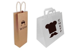 – Sector de la Alimentación y Bebidas. El modelo recomendado para el sector de la alimentación es la Bolsa de Papel Blanca Take Away. Su base es ancha, por lo que es ideal para el transporte de recipientes con comida para caterings, hoteles, pastelerías, etc. Para el sector de bebidas (vinotecas, licorerías, bodegas, etc.), pueden utilizar la Bolsa de Papel para Botellas (14+8,5×39,5cm), adecuadas para el transporte de 1 o 2 botellas. Asimismo, se puede escoger la Bolsa para Botellas en color Kraft o Blanco.