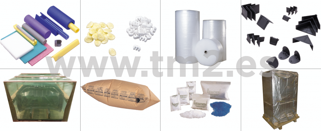 – Bolsas hinchables: se usan para acolchar el producto y cubrir espacios libres. Protege la mercancía ante impactos y evita movimientos del producto dentro de la caja.