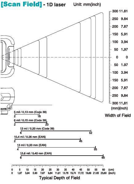 Esto le esta servirá para elegir el rango de lectura del lector que normalmente llevan incorporado los terminales las distancias van desde unos cm hasta varios metros (version Extra Long Range) pero esto también influye en el precio, y la distancia tambien se ve afectada por el módulo de codigo de barras empleados Modulo X (ancho de la barra más estrecha, normalmente en milésimas de pulgada). (vea el grafico adjunto):