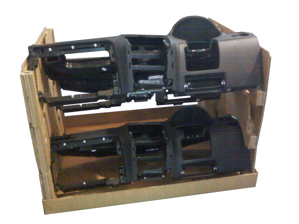 DS Smith Tecnicarton ofrece, a través de su Departamento de Diseño, soluciones de embalaje para el transporte de salpicaderos personalizadas para cada fabricante de automóvil y su proveedor de Nivel 1.