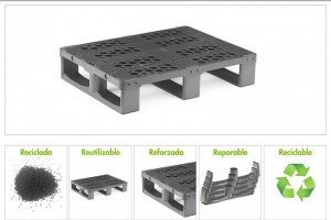 El medio palé incorpora además dos elementos fundamentales para mejorar su rendimiento y vida útil. Por una parte, refuerzos metálicos en el tablero que le dan mayor resistencia y soporte a una mayor carga, y, por otra parte, los patines intercambiables hacen pueda ser reparado de forma fácil y económica en caso de sufrir impactos o roturas en los procesos de manipulación de mercancías. Las piezas deterioradas son recicladas y se convierten en el principal ingrediente de los nuevos palés.