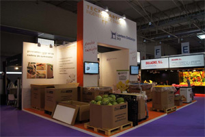 Otro gran protagonista en esta área es el Tecni-Fruit, un contenedor que puede ser cuadrado u octogonal y fabricado con las calidades de cartón más altas: Cuádruple, Quíntuple, Sextuple…, en la feria se mostraron ejemplos de contenedores con sandías, naranjas, almendras…