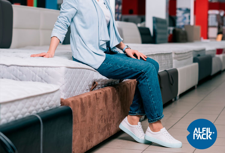 Para dar solución a las problemáticas de este sector Alfilpack ha desarrollado un embalaje de cartón, que permite empaquetar diferentes modelos y tamaños de colchón. Es un sistema de embalaje adaptable, diseñado para dar protección al producto reduciendo la manipulación en la distribución. Esto permite entregar el producto en óptimas condiciones al cliente.