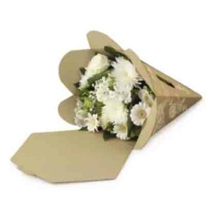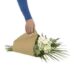 Acondicionar los ramos de flores con papel transparente o con un cono de cartón kraft con asa es una manera cómoda y eficaz de prepararlos en la tienda para la entrega al cliente.