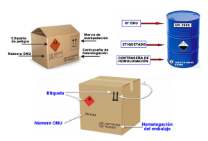 En el exterior del embalaje destinado a la contención de mercancías peligrosas, podremos distinguir una referencia al tipo de envase que estamos utilizando –Cajas 4G o Cajas 4GV, por ejemplo-, sus características, peso y estado de la materia que contiene, así como el año de clasificación del contenedor. Esta información aparecerá dentro de la contraseña de homologación.