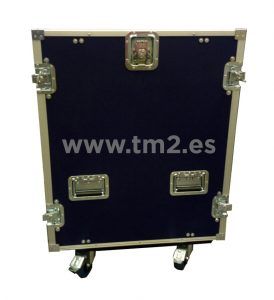 Como podéis apreciar en las imágenes, la caja se fabricó 100% a medida según las necesidades de nuestro cliente, estaba compuesta por: ruedas con frenos para mayor agilidad de su transporte, cantoneras metalizadas resistentes a golpes, asas para su fácil manipulación, cierres de mariposa para mayor seguridad de cierre, guías interiores para la fijación del material, protección interior con foam de alta densidad, etc.
