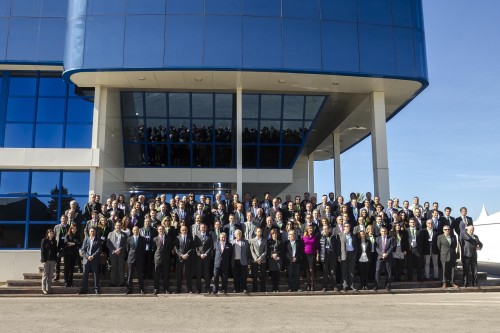 Para todos ellos se preparó una visita a la planta y una muestra de la rapidez con la que puede trabajar esta impresora digital industrial. Precisamente para demostrar esta rapidez se realizó una foto a todos los asistentes que, antes de terminar el acto, se pudo ver impresa en gran formato.