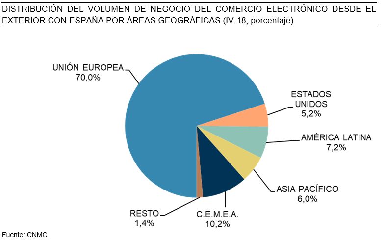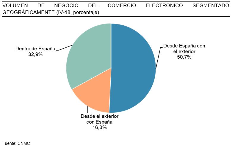 A su vez, las ventas desde webs españolas hacia el exterior obtuvieron una facturación de 1.765 M (un 50,3% más que en el mismo periodo de 2017) y un 70% de las compras desde el exterior procedía de la Unión Europea.