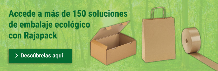 En RAJA® disponemos de una amplia gama de referencias de embalaje EcoResponsable. Busca entre nuestros productos las cajas, sobres, materiales de relleno, flejes y cintas adhesivas más apropiadas para tu negocio. Lo mejor es que no solo son EcoResponsables… ¡también son personalizables!