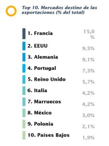 Pese a tratarse del octavo destino de las exportaciones de las empresas industriales de amec, las miradas están puestas también en el comportamiento de México en la actual crisis, ya que el país ocupa la tercera posición como mercado de interés. Respecto a los mercados más próximos, Francia y Portugal mantuvieron en 2019 una tendencia de crecimiento estable (7% y 5% respecto a 2018, respectivamente), mientras que las ventas a Alemania continuaron con la tendencia de desaceleración de 2018, disminuyendo un 9% respecto al año anterior.