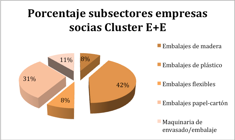 El volumen total de facturación del Cluster E+E de la Comunitat Valenciana, con 26 empresas en 2014, último año del que se tienen resultados, fue de 459 millones de euros. Las empresas que lo forman en la actualidad están subdivididas en cinco grandes subsectores de envase como son los embalajes de plástico, con un 41,7% de empresas, embalajes de papel-cartón, con un 30,6%, maquinaria de envasado/embalaje con un 11,1%, embalajes de madera, con un 8,3%, y embalajes flexibles, con un 8,3%.