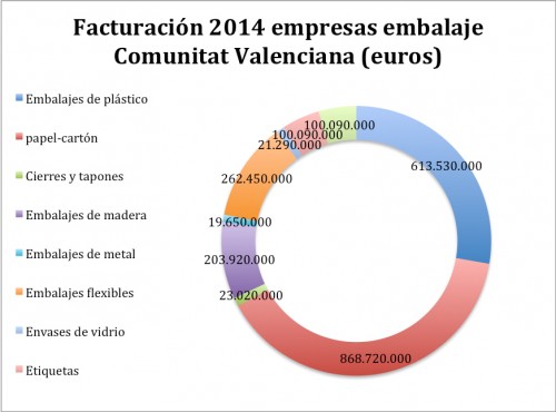 Estos datos, contrastan con los reflejados por el sector del envase y embalaje a nivel de Comunitat Valenciana, donde el subsector papel-cartón cuenta con el 32% de las empresas y una facturación en 2014 de 868 millones de euros. Mientras que el subsector embalajes de plástico es el segundo en importancia con un 24% de las empresas. Este subsector facturó en 2014, a nivel de Comunitat Valenciana, 613 millones de euros.