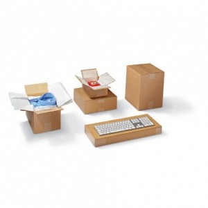 Cajas de cartón ondulado con fondo automontable de rápido montaje y altura variable. Gracias a su fondo automático ahorra tiempo y cinta adhesiva. También disponible con cierre adhesivo para no necesitar nada más que meter el objeto y ¡listo!