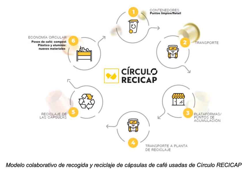 Círculo RECICAP es una organización sin ánimo de lucro que se constituyó el 13 de julio de 2021 con el objetivo de crear, desarrollar y gestionar un ambicioso sistema colectivo de recogida y reciclaje de ámbito nacional de cápsulas de café post consumo de plástico y de aluminio. Bajo el paraguas de la Asociación Española del Café (AECafé), 24 empresas — AB Café – Sevillana de Café, BOU café, Café Arabo, Café Dromedario, Café Fortaleza, Café Jurado, Café Rico, Cafento, Cafés Baqué, Cafés Batalla, Cafés BO, Cafés Guilis, Cafés La Brasileña, Cafés Orús, Cafés Toscaf, Coffee Productions SL, Expressate, Fast Eurocafé (Cafés Oquendo), General Coffee Blenders, Global Coffee Industries, Grupo UCC, Jacobs Douwe Egberts (JDE), Nestlé España, Productos Solubles (PROSOL)— se han sumado a esta iniciativa para impulsar un único sistema de reciclaje de cápsulas de café, de aluminio y plástico, que garantice una solución integral para el sector. Las compañías emplean, de base, el sistema de reciclaje que Nestlé, a través de las marcas Nescafé Dolce Gusto y Nespresso, puso en marcha en España en 2010.