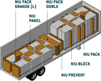 Sistema de protección de mercancías #NiupackPanel, para rellenar los huecos incompletos del pallet para cuadrar la mercancía. El producto va principalmente dirigido a sectores de maquinaria y empresas de transporte y logística en general: