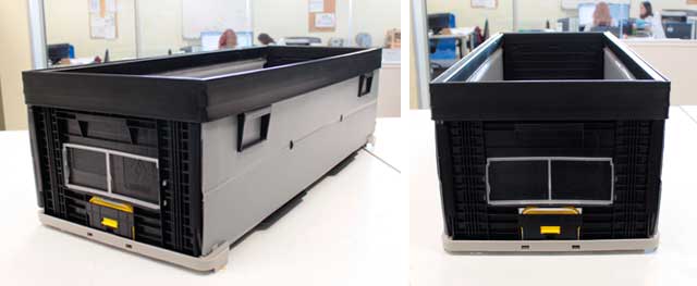 En el sector de automoción, presentaremos nuestro nuevo Bac Plegable, diseñado para Renault, con la incorporación de unas asas especiales en los testeros que sirven de cerrojo. Esta incorporación, fruto del trabajo de nuestro departamento de I+D+i , proporciona a estos Bacs Plegables una mayor ergonomía y seguridad. Además de que aumentan la rapidez de montaje.