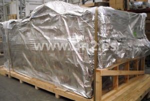 Funda de complejo alumínico al vacío: las fundas de aluminio se utilizan para proteger la mercancía de la humedad y así evitar la corrosión. Se coloca cubriendo toda la mercancía, se sella térmicamente y se elimina el aire de su interior para evitar oxidaciones.