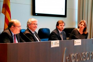 Antonio Llobet, Presidente del Consejo General de Agentes de Aduanas de España, Blanca Sorigué, Directora General del SIL, Jordi Cornet, Delegado Especial del Estado en el Consorci de la Zona Franca de Barcelona, y Guillermo González Larsen, Vice-presidente Primero de ALACAT.