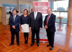 Barcelona, 5 de mayo de 2016. Jordi Cornet, Delegado Especial del Estado en el Consorci de la Zona Franca de Barcelona, Guillermo González Larsen, Vice-presidente Primero de ALACAT, y Blanca Sorigué, Directora General del SIL, han presentado esta mañana ante los medios de comunicación el mayor evento logístico del mundo que se celebrará en Barcelona del 7 al 9 de junio coincidiendo con la celebración del Salón Internacional de la Logística y de la Manutención. Barcelona se convertirá en la capital mundial de la logística con la celebración simultánea de 5 grandes eventos internacionales: