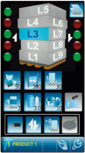 Desde el panel de control, una pantalla táctil en color de siete pulgadas, se pueden configurar fácilmente las distintas zonas gracias al clarificador sistema de iconos que hemos desarrollado. Una vez configurado un tipo de palet se puede almacenar en la memoria de la máquina, capaz de guardar hasta seis tipos de palet distintos.