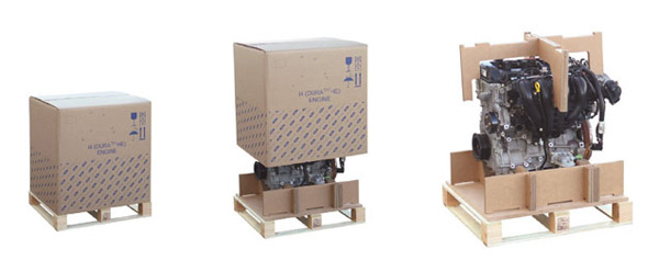 El embalaje en cuádruple®, ofrece una sujeción óptima del motor aprovechando el espacio para su almacenaje y ofreciendo máxima protección debido a la robustez que le caracteriza. Otro inconveniente suprimido gracias a este nuevo sistema es el alto riesgo de accidentes laborales provenientes de astillas, clavos entre otros. Por último, otras de las ventajas no menos importantes son la posibilidad de impresión en el embalaje incrementando de esta forma la personalización de producto al cliente y la facilidad de reciclaje (100% cartón ondulado), cada día más valorada. Todo ello, a un precio más competitivo que el embalaje de madera.