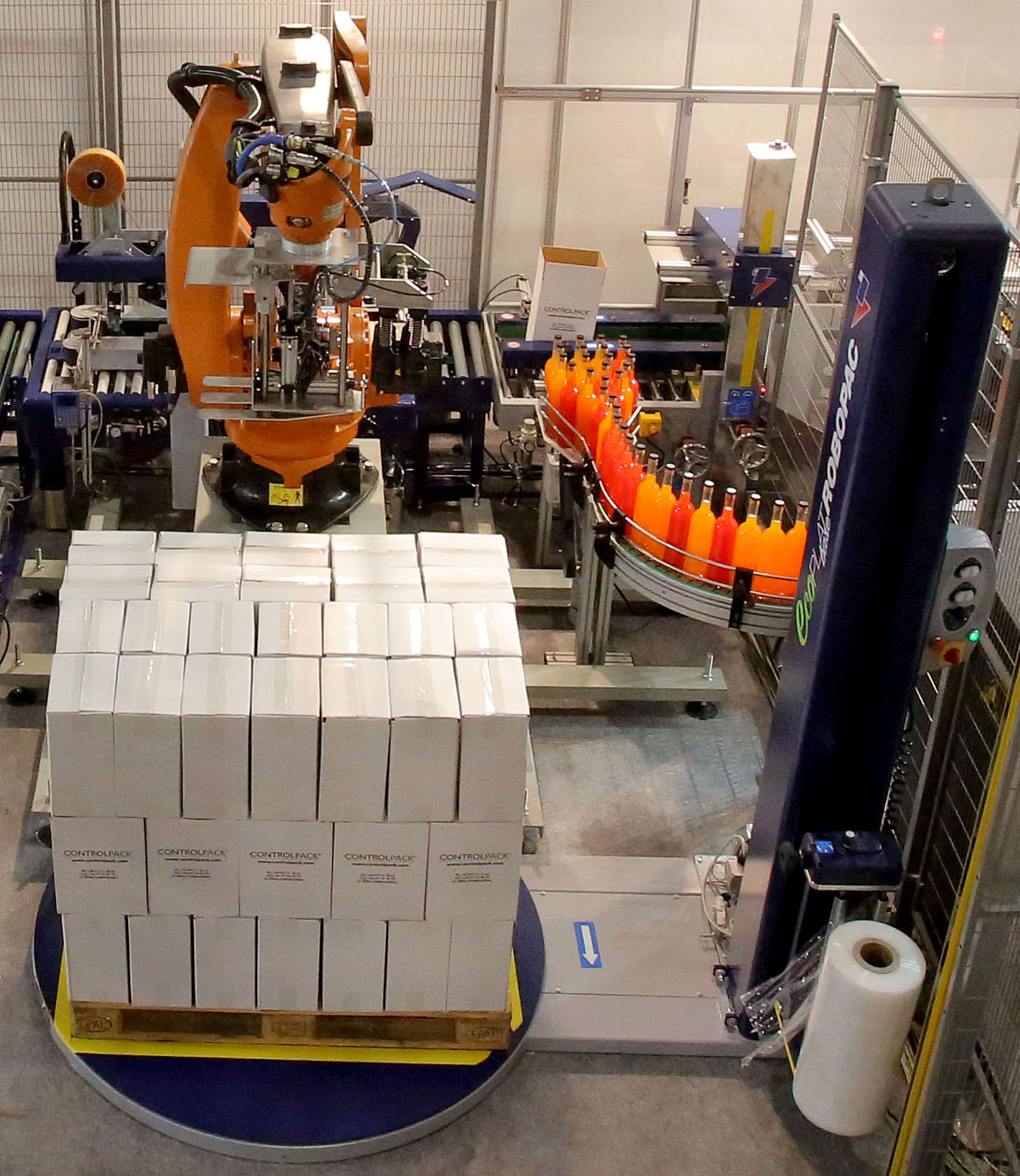 Bajo el nombre Pack & Box Controlpack presenta un producto versátil y funcional, capaz de realizar, de forma automática, los diferentes procesos que se enmarcan dentro proceso de embalaje: agrupado de producto, encajado automático, paletizado mediante robot y enfardado final del palet terminado.