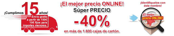 Súper precio en todas nuestras cajas de cartón, además portes gratis desde 150€ de pedido