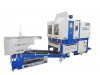 La máquina está constituida por una zona de cargador, donde se introducen las planchas troqueladas y un empujador. En una primera fase, las ventosas de la máquina absorben el material, luego se le aplica a la cola, y, en un tercer paso, se introduce en el molde la plancha y se monta.