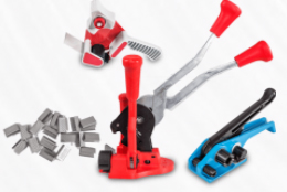 Flejadoras para flejes polipropileno y poliéster. Portarollos de plástico para film estirable. Dispensadores de cinta de embalaje. Grapado industrial para embalaje.