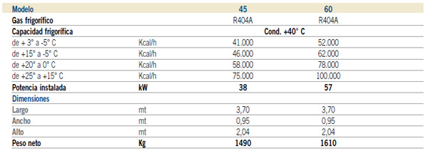 Está provisto de grupo motocondensador de aire, con compresor semihermético que opera con gas ecológico R 404A.
