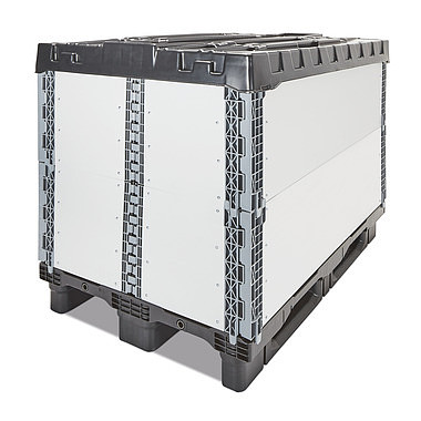 Con nuestros anillos de plástico que se puede plegar dos veces, convertirá su palet de formato Euro en un contenedor. La solución ideal para la exportación y el almacenamiento dentro de la empresa.