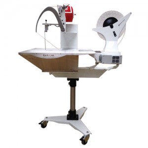 Máquina capaz de atar con hilo elástico y aplicar una etiqueta en una sola operación. No daña el producto gracias al sistema de atado patentado.