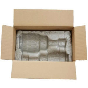 3. Colocar la bolsa en el interior de la caja y centrarel producto, manteniéndolo en la posición hasta que quede envuelto por la espuma.
