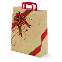 Motivo festivo: Impresión lazo navideño de color rojo, bolsa color marrón, interior blanco y asas color rojo navideño.