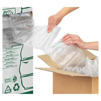 La caja distribuidora contiene 300 bolsas de aire compuestas de 99% de aire.Dimensiones de la bolsa: 20 x 10 cm. Formato de la caja: 38 x 62 x 62 cm.Contiene 0,16 m3 de material de relleno