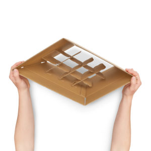 El fondo de la caja para envío es automontable, se monta con un sencillo gesto y garantiza una gran estabilidad, para reducir que las botellas golpeen entre sí durante el transporte.
