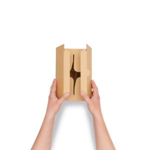 Nuestra caja de envío de botellas de vino se monta rápidamente y permite guardar hasta 6 botellas, gracias al práctico fondo automontable.