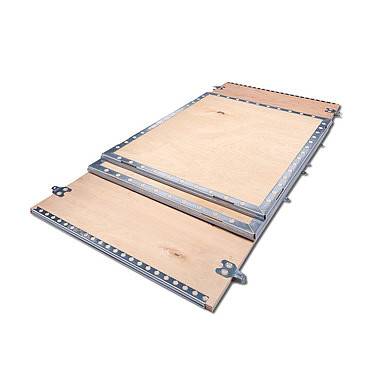 Bordes protegidos con perfiles de acero. La caja cumple con el estándar IPPC (ISPM15) y es adecuada para la exportación a todo el mundo.