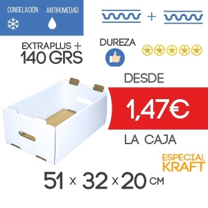 - Caja de cartón para Almacenaje Especial Kraft Blanca 51x32x20 cm
