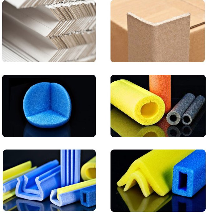 Cantoneras de cartón y polietileno expandido.