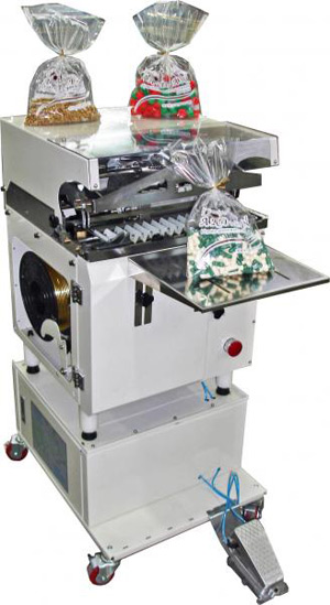 Máquina automática para el cerrado de bolsas con alambre plastificado tipo twist o clip.
