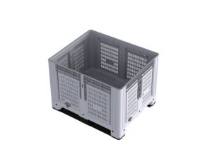 Contenedor o Pallet Box rígido de medidas 1200x1000mm con 2 patines y una capacidad de 676 litros. Dispone de paredes y fondo rejados que favorecen la correcta ventilación del producto, con superficies lisas y esquinas redondeadas, lo que convierte a nuestro contenedor en una solución imprescindible para el sector hortofrutícola. Fabricados en HDPE Virgen, ofrecen un mínimo índice de roturas, siendo una solución muy resistente y estable en el apilamiento. Diseñado para maximizar el volumen de carga interior. Apto para manipulación por caminos de rodillos y volteado.